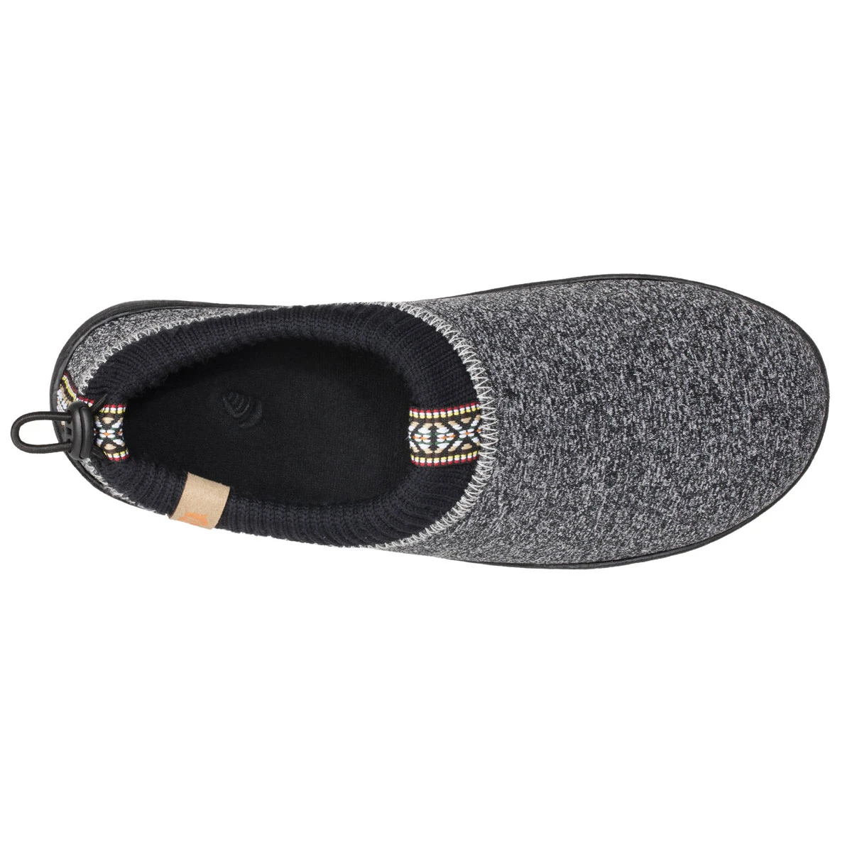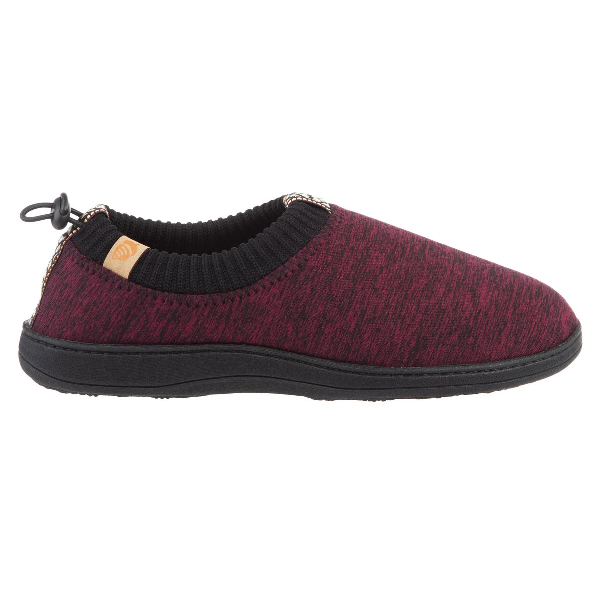 — Materials: Heather knit upper and cotton rib cuff plus durable sole for indoor / outdoor use.